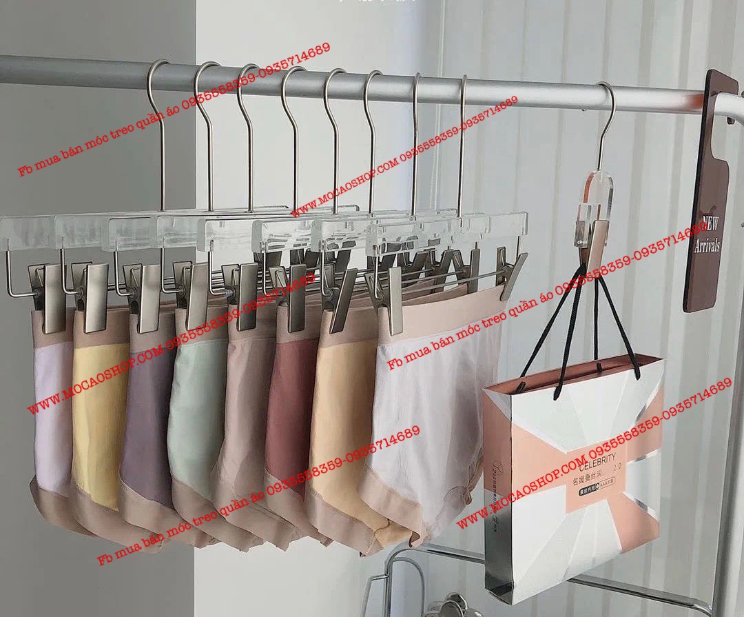 - Chuyên dùng treo áo quần cho shop thá»i trang. Shop Luxury, phong cách sang chảnh - Dài cá»§a móc là 33 cm phù hợp vá»›i tất cả loại quần sÆ¡ mi hay váy hiện nay - Thá»› mika dày đến 1cm, vô cùng chắc chắn. - Äầu móc sắt xoay 360 độ